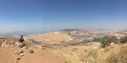 Once I reached the overlook, the 2 1/2 hour hike in 90 degree heat was worth it. The mountain overlooks the Jordan Valley, from the Sea of Galilee, across the Golan Heights, and (on clear days in February) all the way Mount Hermon in Lebanon. At the overlook, we were only about 3 kilometers from the Syrian and Israeli border.