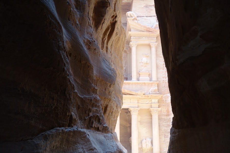 The next morning we woke up quite early to go to Petra, the Rose City. Petra was also famously featured in the West in the film Indiana Jones and the Last Crusade. Petra has also been inhabited since prehistory, but its great stone carvings were made by the Nabataeans, an Arabian tribe who settled there. Petra is hidden in the mountains, it cannot be seen until one passes through the rock cut that leads to the Treasury. This was the largest asset to Petra’s security, as its location puzzled the Greeks and Romans alike. After the Crusades, the city was thought to be lost, until its rediscovery in the 19th century.