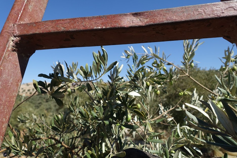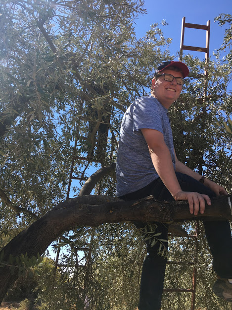 Olive picking in Jordan is not easy work. It’s long hours in the sun day after day, but if you have friends with you, the time passes quite quickly. We are also told that not a single olive is to be left on the tree, it must be picked clean! While olive trees are not tremendously tall, you still need a ladder to get the olives at the top, but if you don’t have a ladder, there are other ways to acquire the harvest..